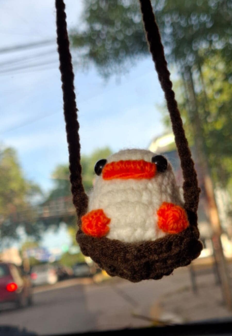Kvackana račka, premer približno 5 cm, obesek za v avto za ogledalo